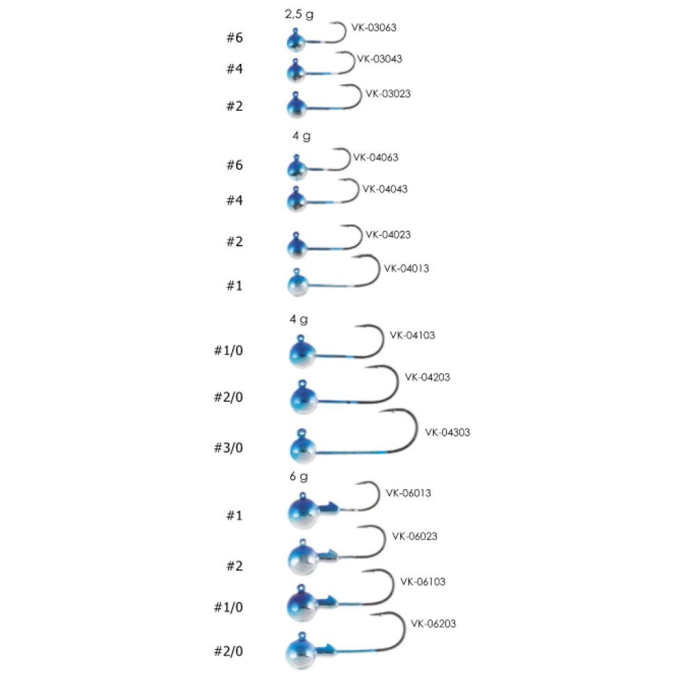 Jig heads in blue-silver color. The smaller sizes are excellent for ice fishing. In the package 3 jig heads.