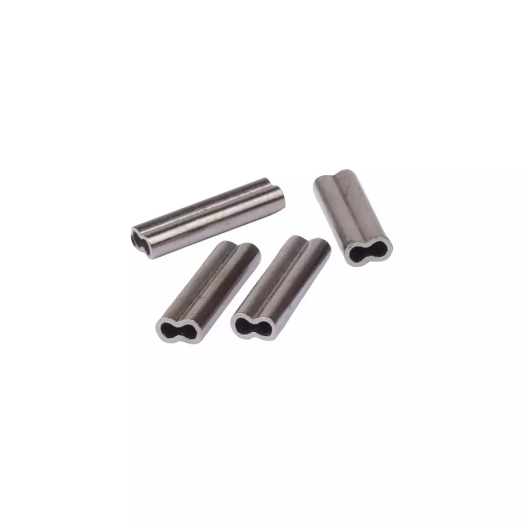 A sleeve used to make leaders and rigs, which is pressed onto a wire or e.g. fluorocarbon fishing line. Also remember the appropriate pliers!