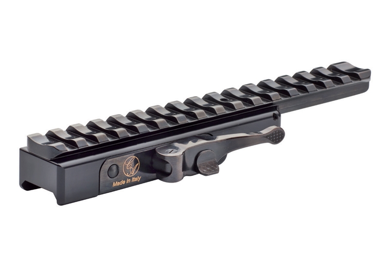 Contessa Simple Black Picatinny NV with Quick-mount rail for you on a normal picatinny rail extended at the back. With this rail, it is easier to mount e.g. a night vision sight or when you need to get the sight further back. Rail length 175mm. The mount moves the rail 6cm.