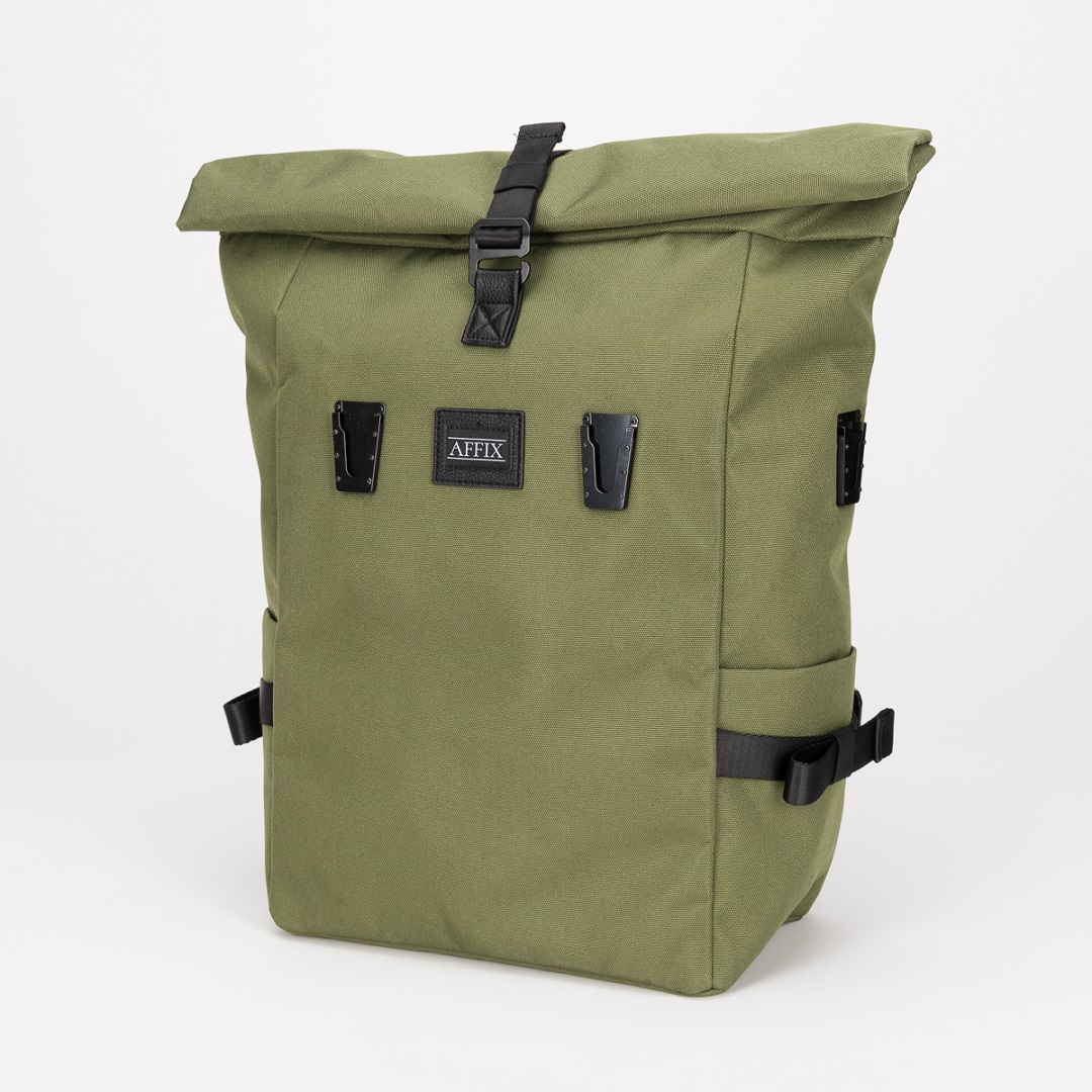 Affix product family day backpack, volume approx. 20 liters. Durable backpack for travel and everyday life. The compact and slim design allows easy and comfortable movement and if you need more space, you can attach Affix HookOn extra bags to the backpack. With extra bags and a rolltop opening, the 20L daypack is also suitable for longer trips.