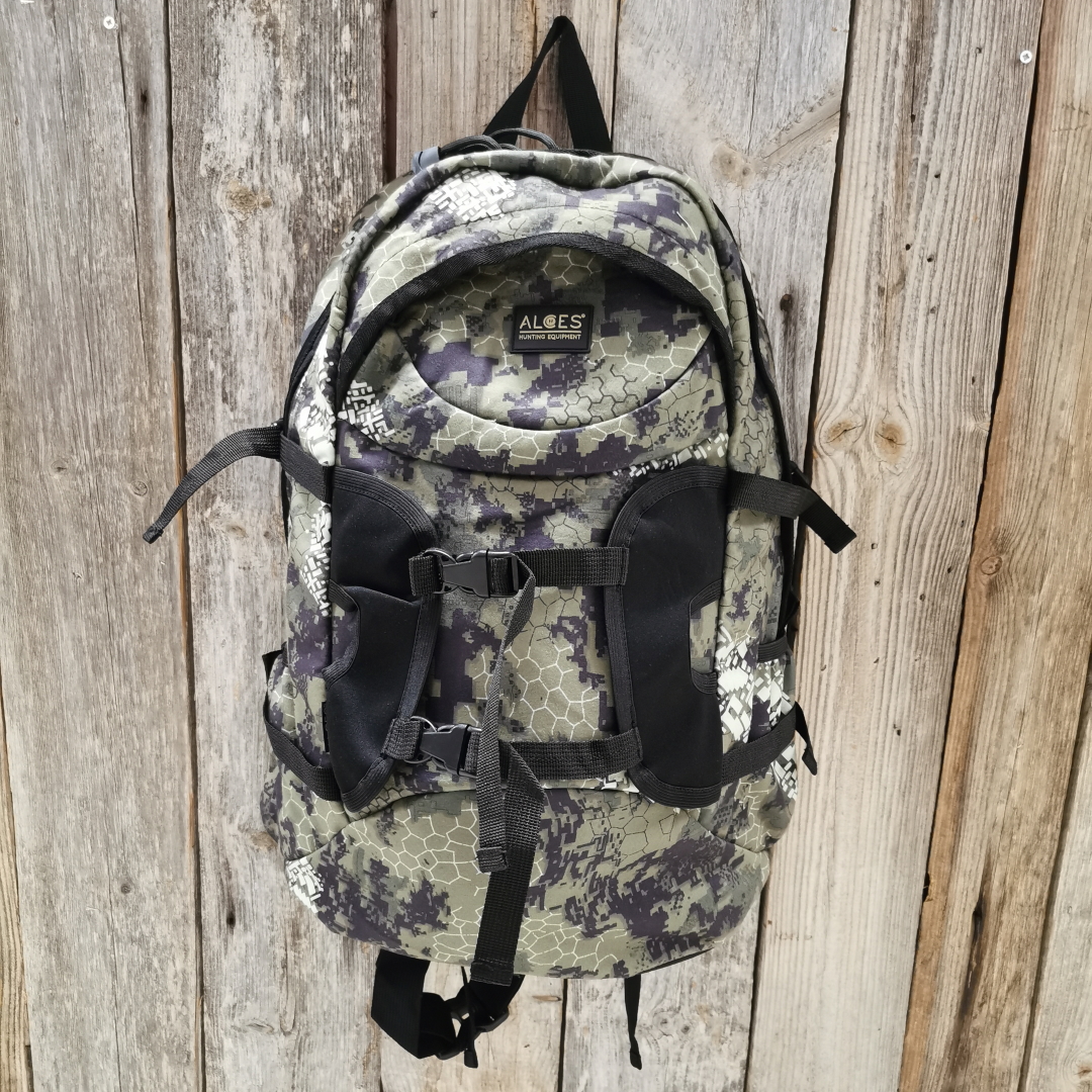 Alces backpack 3D Fade Green Perfect backpack for outdoor activities such as hunting and fishing. This backpack is very suitable for shorter people. The backpack is made of quiet 3D Fade Green patterned fabric. The backpack has plenty of spacious pockets.