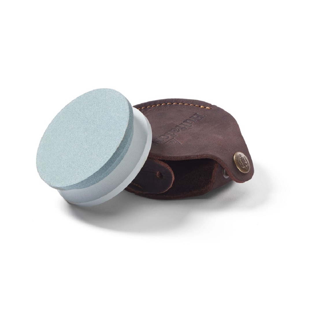 With our sharpening stone, you can easily and safely sharpen your ax wherever you are. The whetstone is properly sized and designed to provide a firm finger grip, thus protecting fingers and hand from cutting injuries. The stylish case in genuine leather protects your whetstone and ensures a long service life. The coarse side has a grain size of 180 and the finer side has a grain size of 600, which is a good combination to sharpen your ax again. Feel free to sand with water to make the work easier.