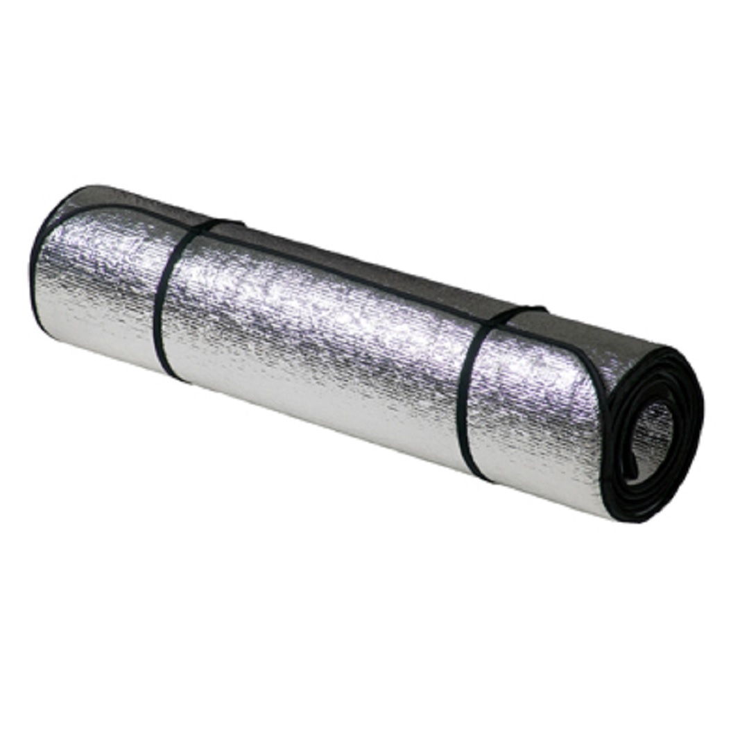 Very light and insulating pad with PE foam insert, aluminum coating on both sides.