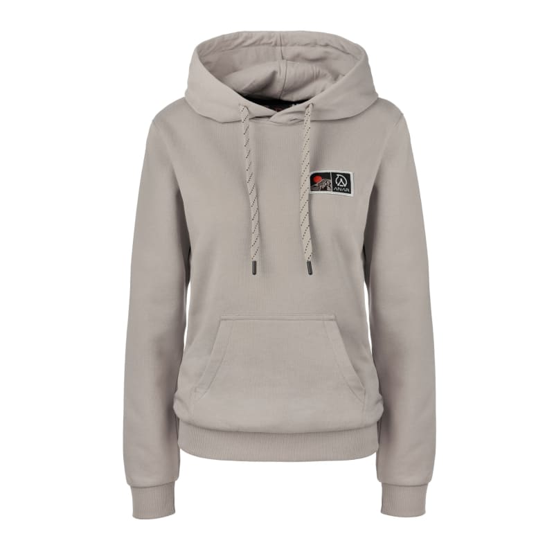 The hoodie has a relaxed cut and a kangaroo pocket at the front. The hem and cuffs have elastic. The hood, which can be tightened with adjustment cords, has a thin jersey lining. The look of the hoodie is completed by the Anar logos on the edge of the hood and on the chest.