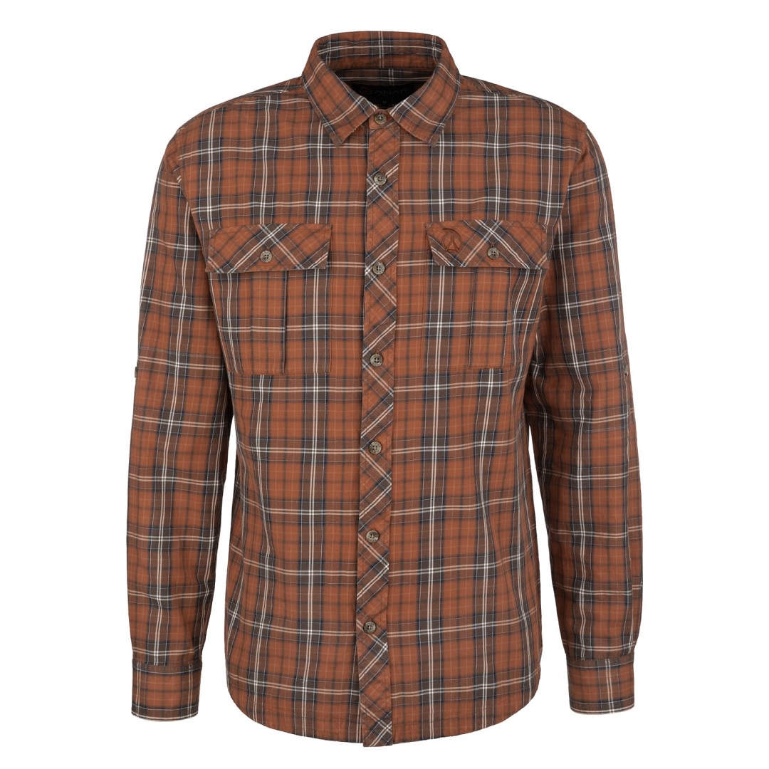 Anar Nellim long-sleeved shirt is a light button-down collar shirt made of organic cotton, which is suitable for use both in the forest and in leisure time. The shirt has a normal size and the soft material feels comfortable directly on the skin or as an intermediate layer. Thanks to tabs on the sleeves, it is easy to roll up the sleeves and fasten them with buttons. This timeless and classic shirt is the perfect choice for everyday wear.
