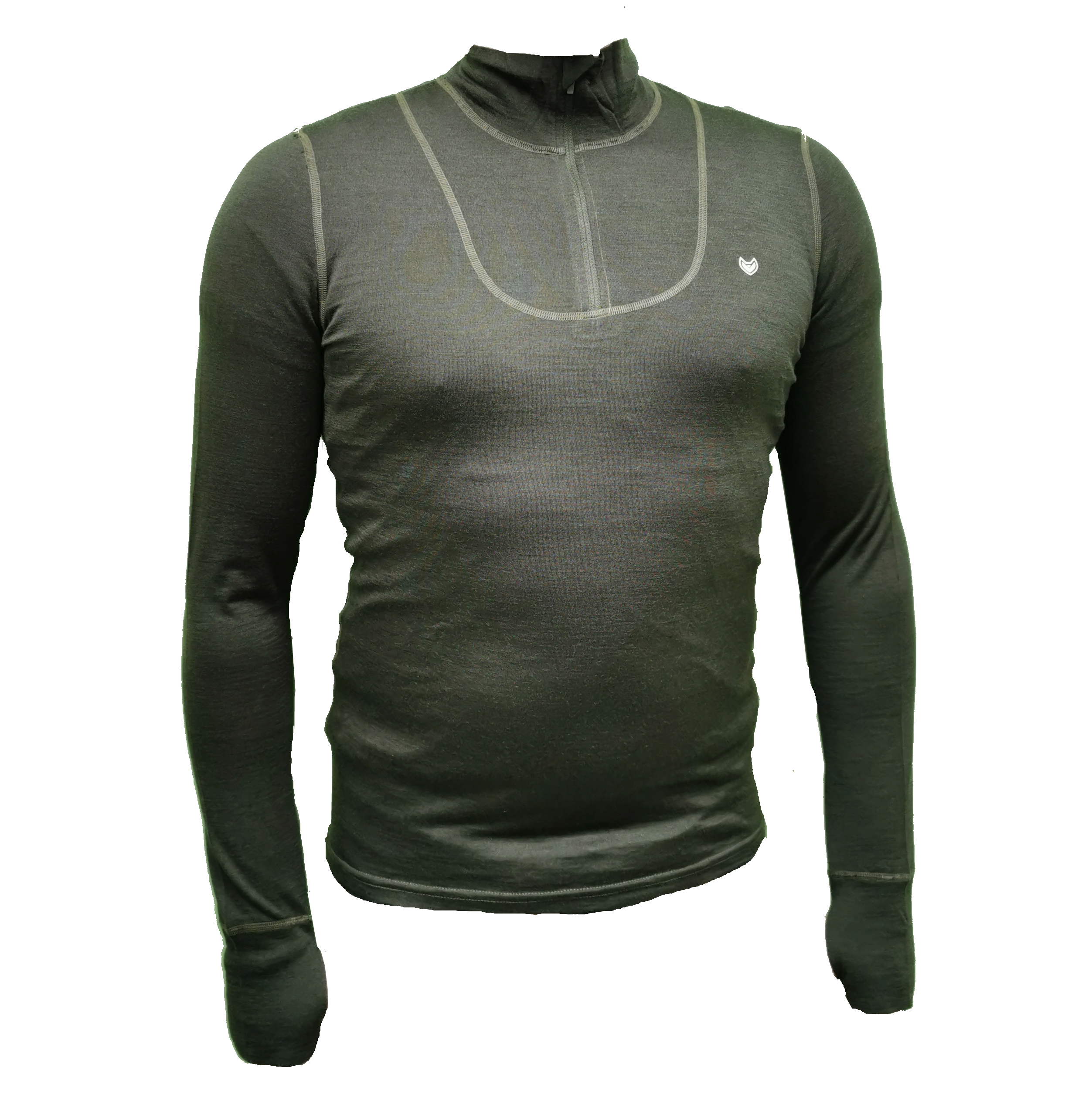 Haunter Merino 180 High Collar Undershirt is a high quality undershirt made from 100% merino wool. The shirt has a polo collar with a zipper. Merino wool is warm, doesn't itch, really comfortable to wear and doesn't absorb body odor.