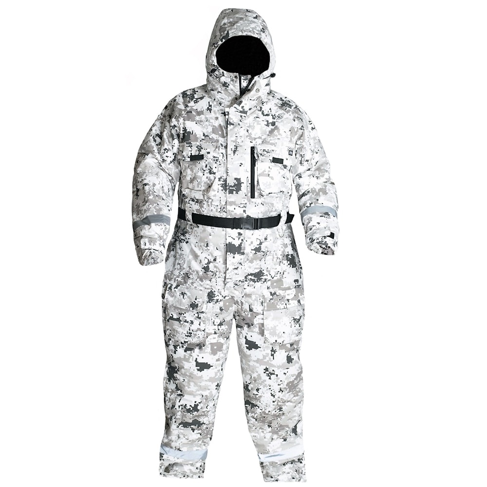 Isfog Faraway Winter overall is designed for challenging winter conditions. The material's good abrasion resistance and water resistance enable versatile activities without compromising comfort. The coverall has a large protective, adjustable and form-fitting hood, under which a thick hat fits. The adjustable elastic braces improve the fit and the weight of the overalls does not burden the back. The overall has many practical features for ice fishermen, those who move around on ice and those who need to carry accessories: press studs on the chest, five pockets with zippers, two velcro pockets and D-loops on the belt.