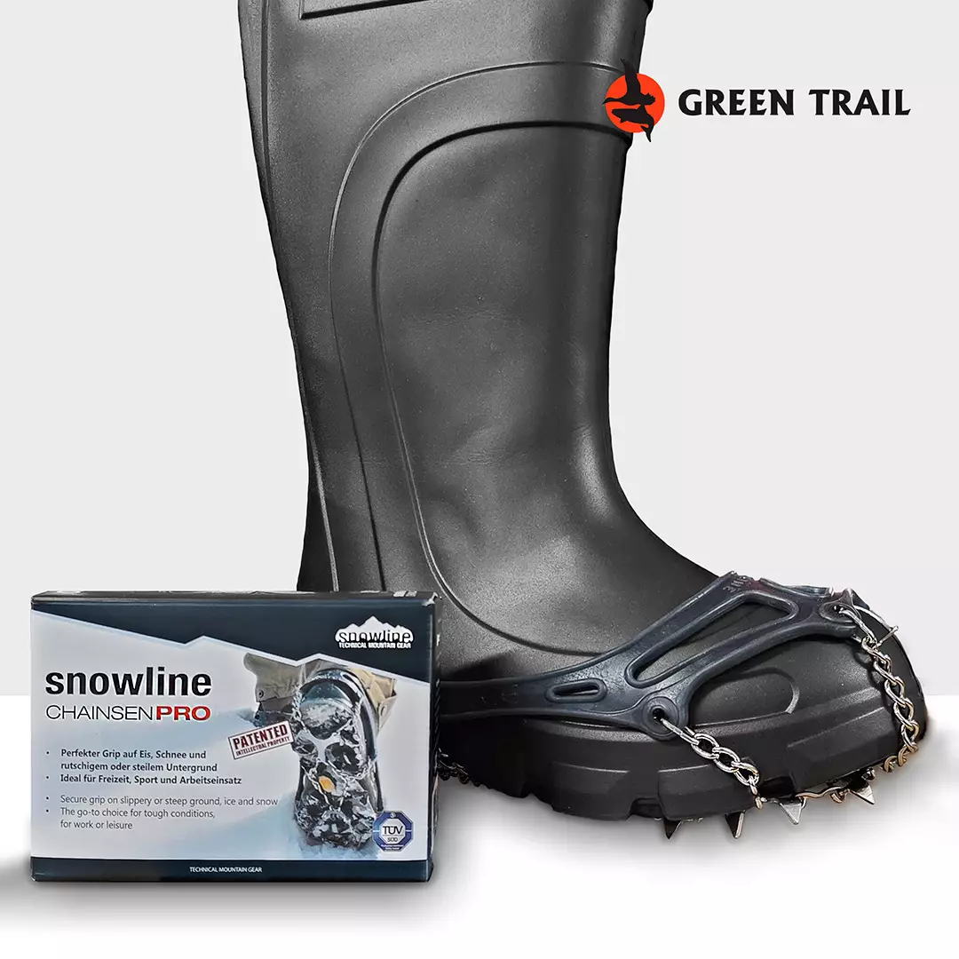 Snowline Pro Power Anti-slip protection with excellent grip on ice and snow. The slip protection fits all shoes. Stainless steel nails and chains.