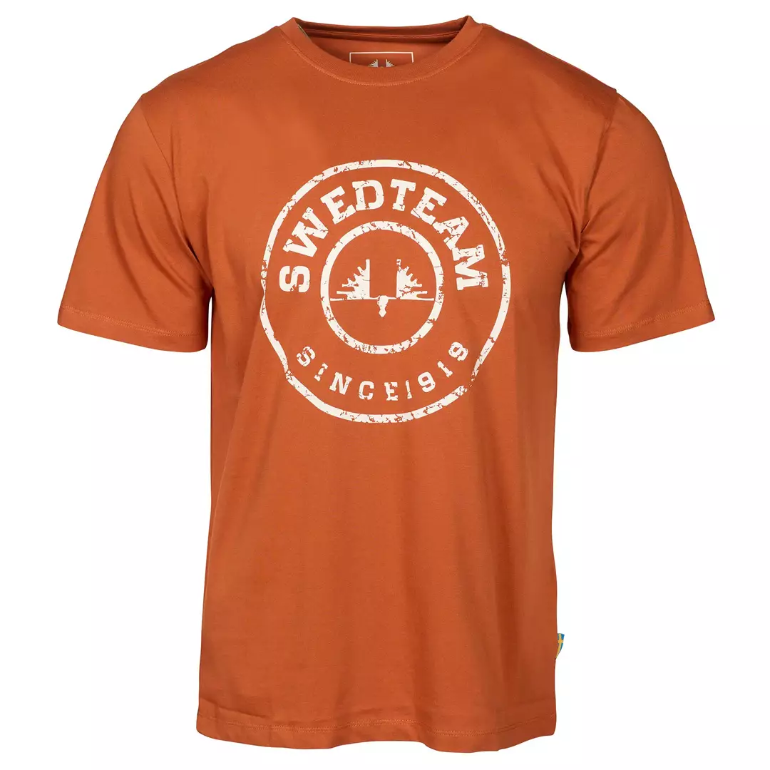 The Swedteam Ultra T-Shirt Orange is a high-quality men's t-shirt designed especially for hunters. Made from 100% soft and breathable cotton, this shirt offers excellent comfort even during long days.