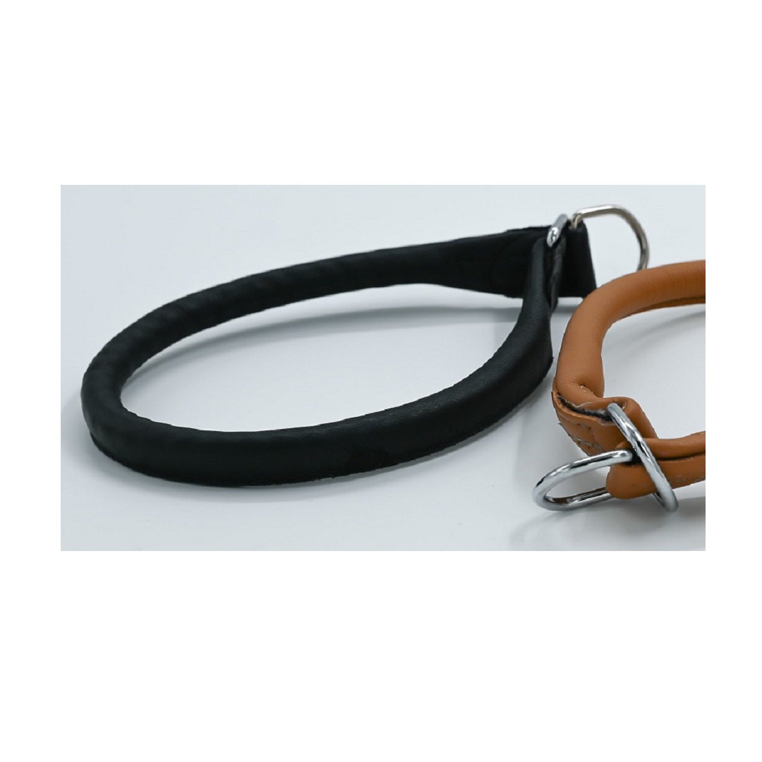 Svart mjukt läder, rund helstryp halsband med repförstärkning.