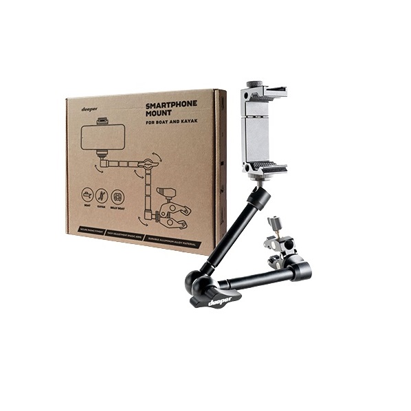 Håll din smartphone till hands och säker när du fiskar från båt eller kajak. Fäst monteringsarmen på båten och placera telefonen i hållaren så är du redo. Denna smartphonehållare är också kompatibel med Deeper Flexible Arm Mount 2.0.