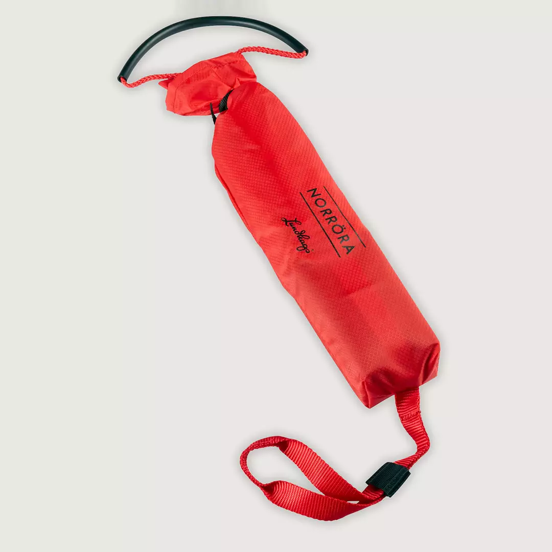 24 meter flytande livlina, tillverkad av polypropen, viktad för att optimera kastning. Förvaringsväskan glider bra på is och snö och har ett justerbart handtag.