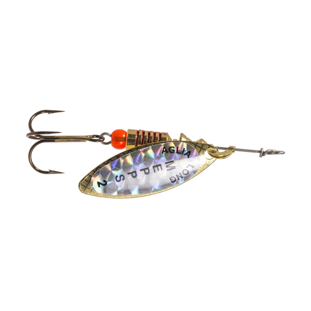 Mepps Aglia Long - vibrationen och den visuella bilden som bildas i vattnet förändras snabbt och pausas för ett ögonblick. Även vid långsam invevning är den snabbt roterande långbladiga skeden perfekt för högflödande vatten. Långsam rörelse lockar framför allt passiva, bottenliggande rovfiskar, eftersom de inte särskilt ofta träffar snabbt rörliga beten.
