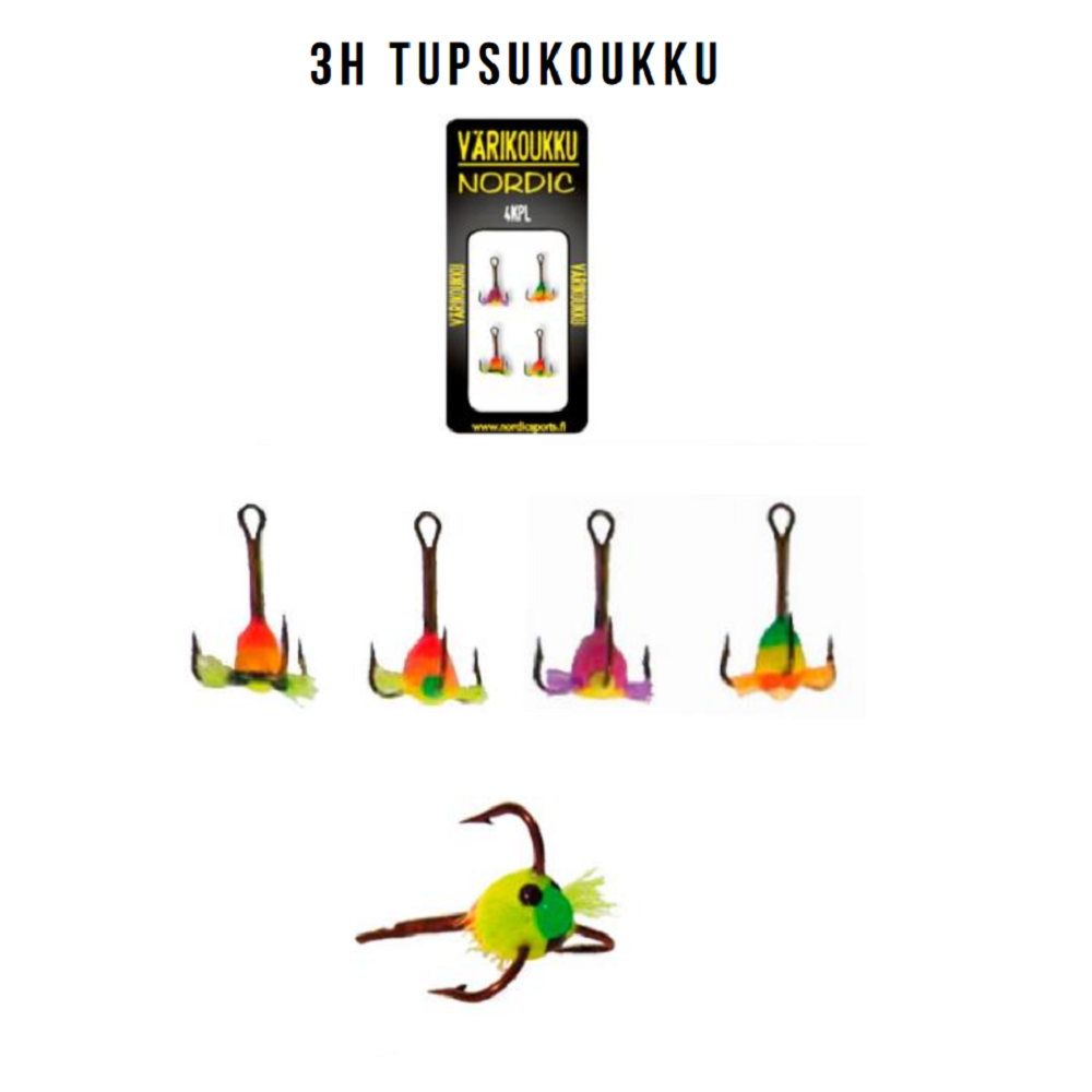 Fisherman Färg 3-krok med tofs 4st