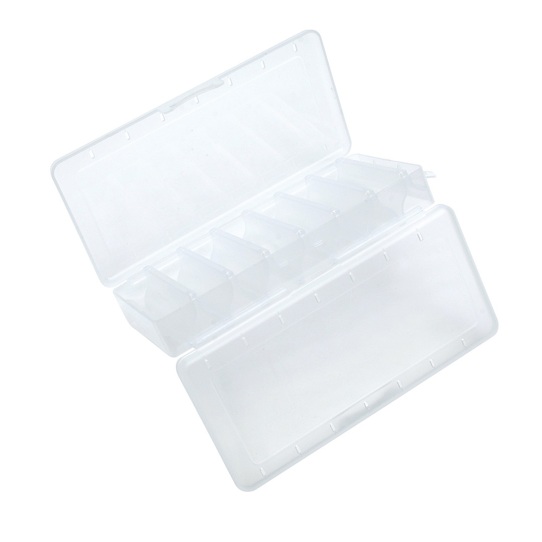 Tillverkad av jiggbeständig flexibel plastblandning. 187 x 90 x 35 mm, 14 fack.