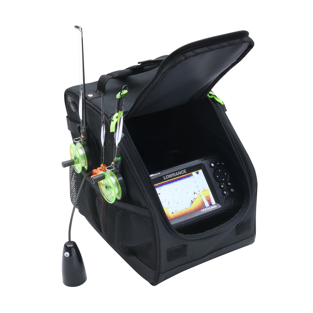 Den universella Patriot ekolodsväskan är designad för användning med alla märken av ekolod. Den robusta ekolodsväskan har många praktiska detaljer och lämpar sig perfekt för till exempel isfiske eller som portabelt ekolod för sommarbruk. I den kompakta väskan, förutom skärmen, är till exempel givaren, batteriet, laddaren och de nödvändiga nätsladdarna skyddade från stötar. Ekolodsskärmen är lätt att fästa på plastplattan i botten av väskan som även har färdiga monteringsband för ett litet batteri.