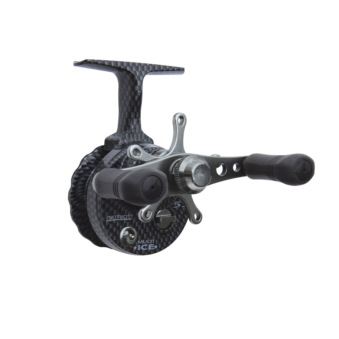 Patriot Multi-Ice är eenrulle som även passar utmärkt för båtfiske. Tack vare den känsliga spolen är det behagligt att fiska med rullen även på djupare vatten, och tack vare transmissionen går det även snabbt att veva upp. Speciellt när du fiskar med balans pirkar och jiggar kan större fiskar överraska dig, och i dessa situationer gör den smidigt justerbara teflonbromsen på Multi-Ice-rullen uttröttning utan ansträngning. Tack vare det stora stjärnhjulet kan bromsen justeras även med handskar på, och gummivevknopparna ger ett stadigt grepp. Multi-Ice rullen har en lätt och tålig komposit stomme och tack vare den långa foten passar den nästan på alla spön och är behaglig att använda med ett traditionellt grepp och ett så kallat penngrepp.