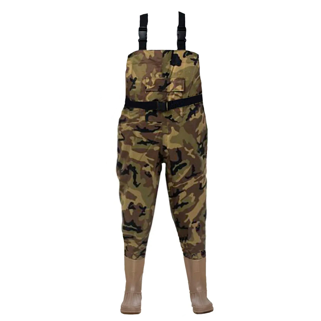 Safari vadare finns nu även i camomönster. Byxorna har justerbara hängslen och ett bälte. PVC-byxorna har svetsade sömmar och hög midja, vilket möjliggör vadning även på djupt vatten. Byxorna har en integrerad gummistövel. Utmärkt för andjakt eller till och med för bryggjobb!