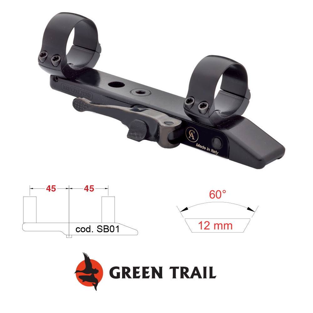 Contessa Simple Blacks Single Shot Rifle, 11mm, 30mm, 3mm fästet är utformat för enkelskotts gevär med en 11-12 mm bred skena. Längden på den del som fäster vid kikaren är 72 mm. Basen har 30mm ringar med en höjd av 3mm.