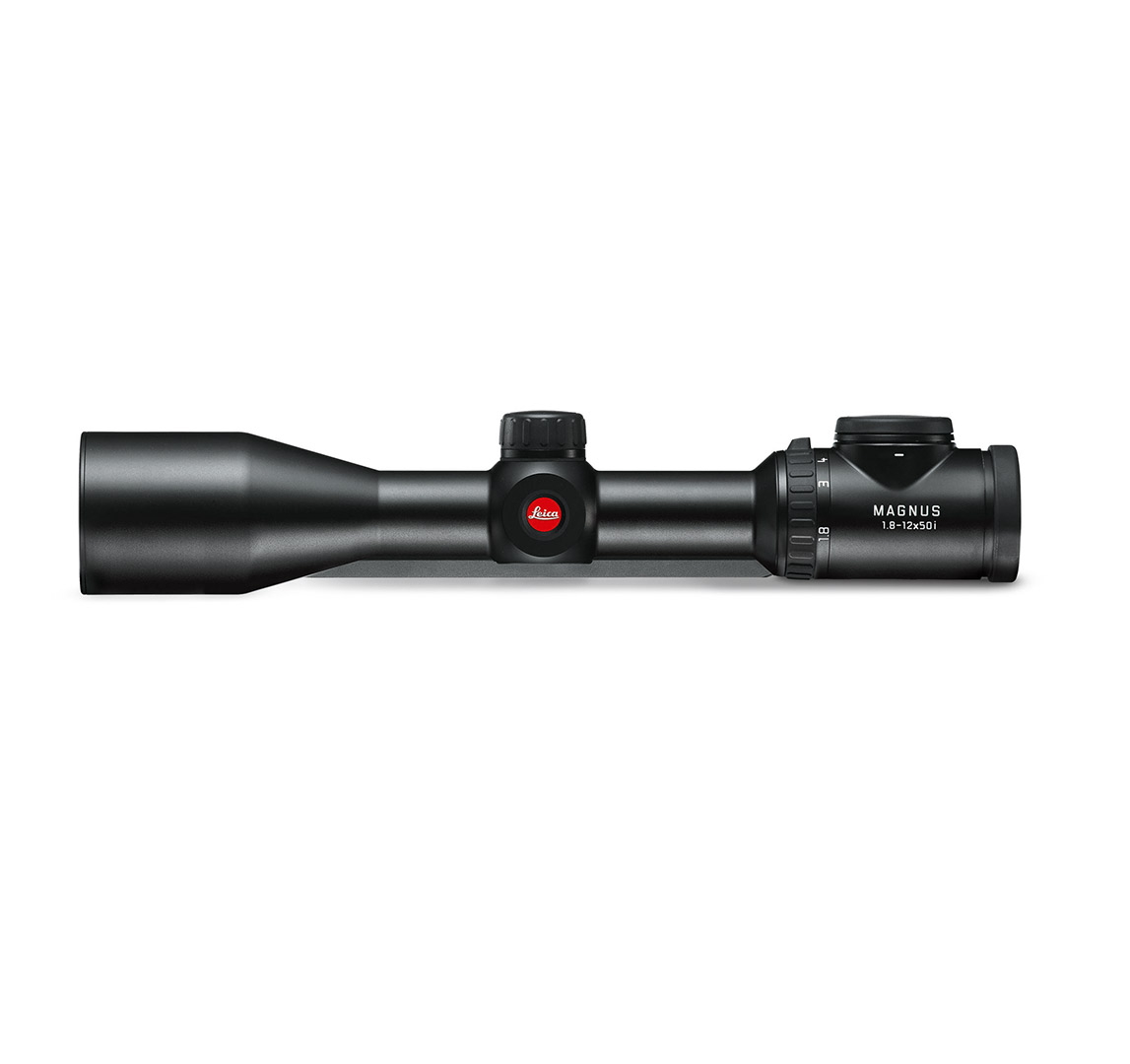 Leica Magnus 1.8-12x50, i L-4a Kikare med skena Överlägsen optisk upplösning, ett stort förstoringsområde och ett fenomenalt synfält är funktioner som gör att Leica Magnus 1,8-12x50 klarar även de svåraste situationerna. 50 mm objektivet på siktet möjliggör ännu bättre ljusgenomsläpp och den mindre belysta punkten ökar användarvänligheten.