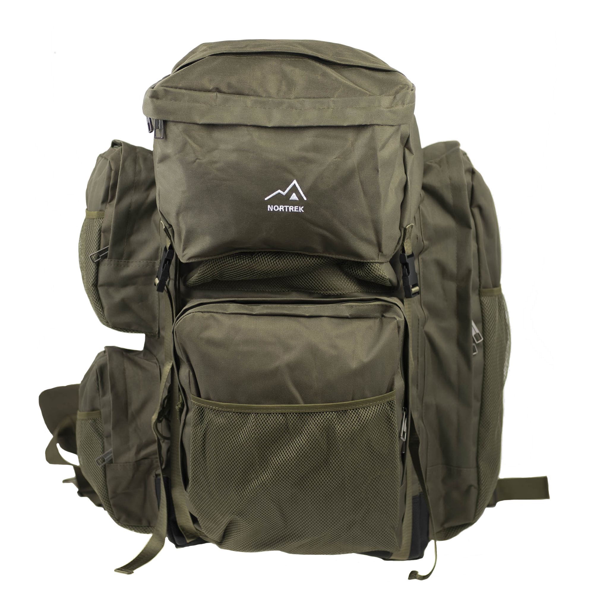 Nortreks stora vandringsryggsäck 75 med mångsidiga funktioner och fickor. Lämplig för mångsidiga aktiviteter, till exempel camping och vandring. Ryggsäcken har ett stort innerutrymme och 6 utvändiga fickor.
