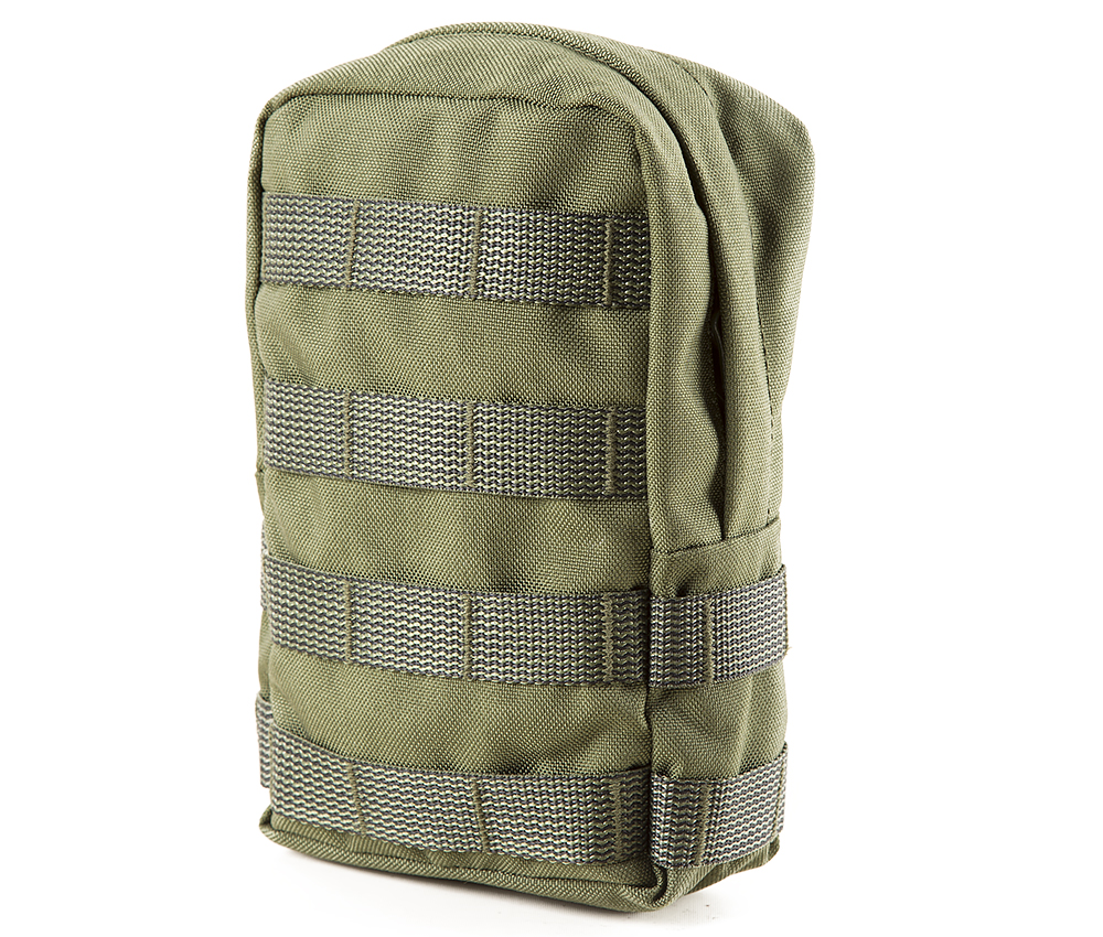 Fickans utsida finns Molle-system för tilläggs utrustning (fram 4×3 och sidan 2×1 ).Inuti finns det ett separat fackfack för små föremål och en rad (1 × 3) Molle-system för pennor till exempel.