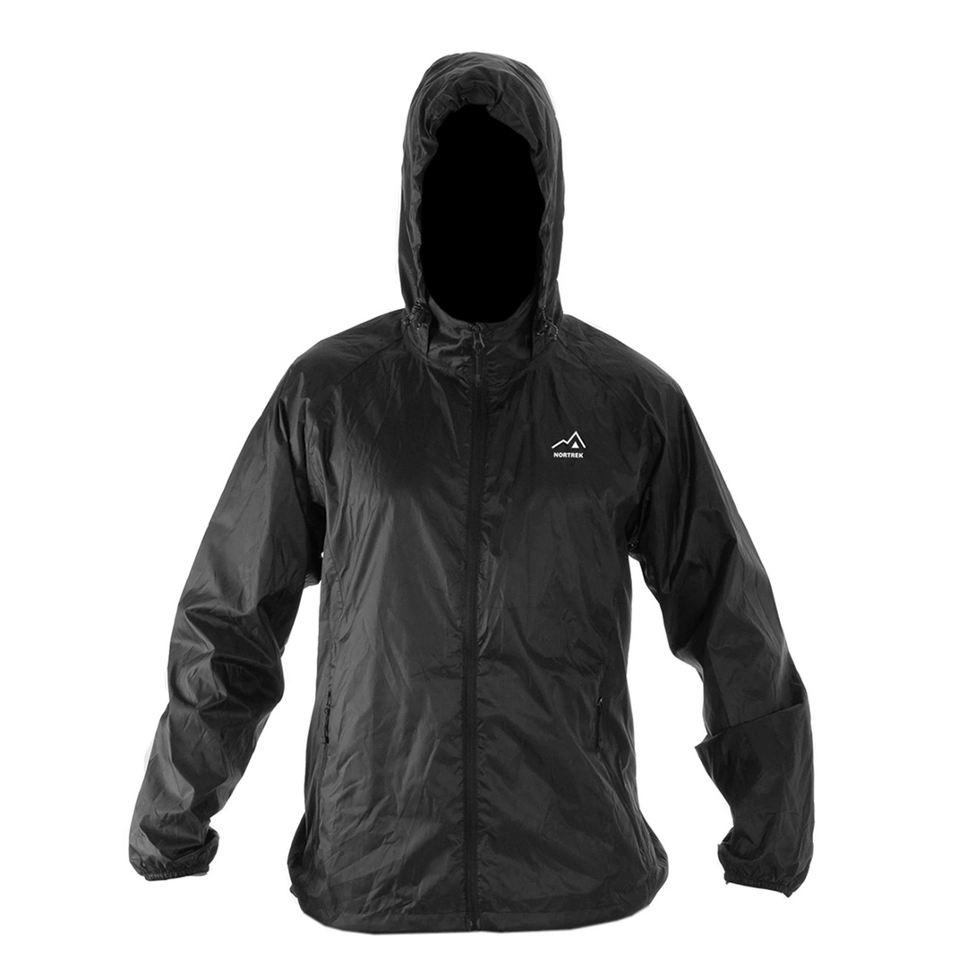 Nortreks regnjacka med huva kan enkelt bäras i en liten väska. Den är väldigt lätt och passar in i ett litet utrymme. Jackan har en modern omvänd dragkedja.