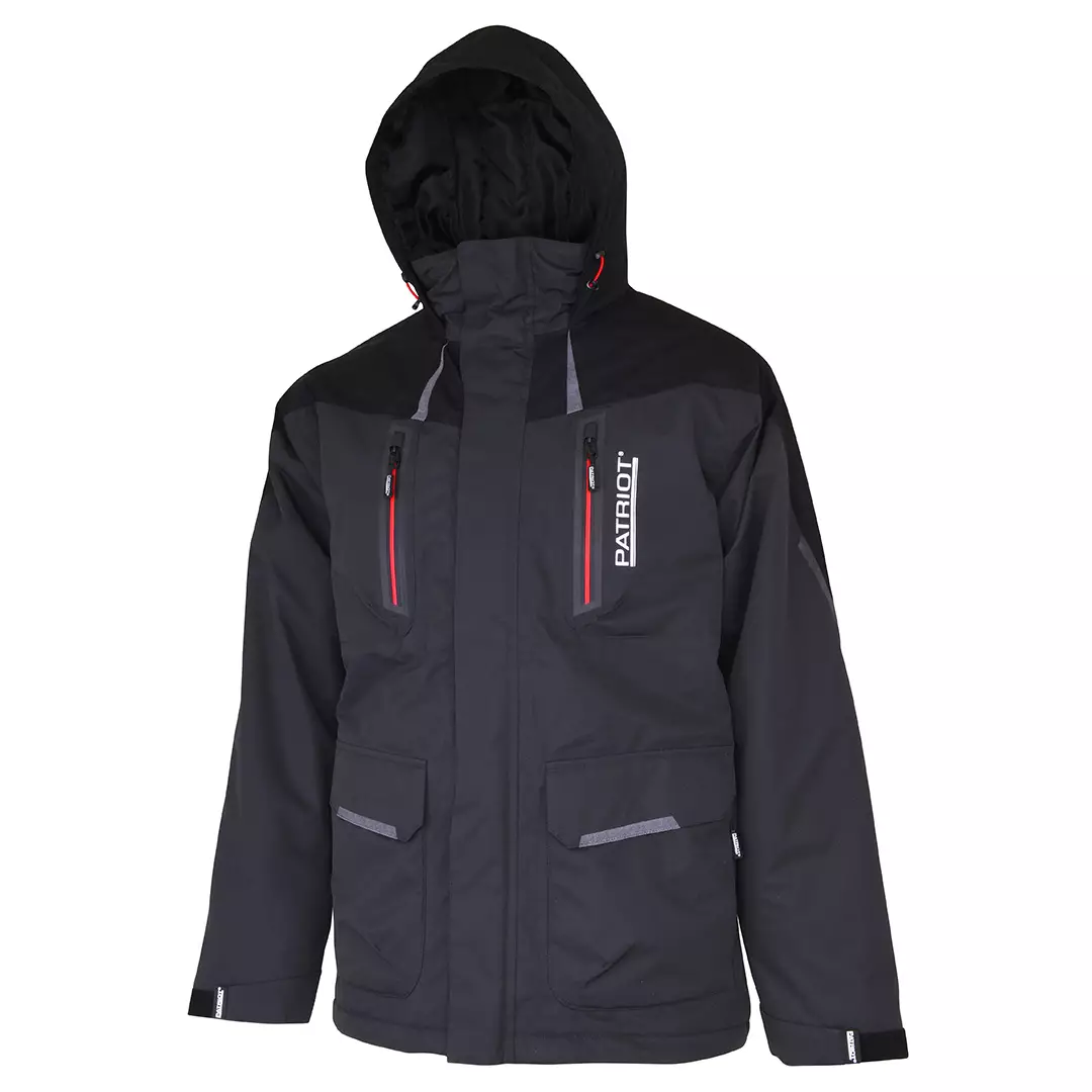 Patriot HeatGuard Thermo-jackan har massor av mångsidiga förvaringsfickor och detaljer. Dragkedjorna på bröstfickorna är stänksäkra, vilket gör att föremålen i fickorna håller sig väl skyddade från väder och vind. På sidorna av framfickorna med klaff finns även handvärmarfickor med mjukt fleecefoder. Jackan har en mångsidig justerbar och utmärkt skyddande huva, åtdragbara muddar och en hög krage med mjuk fleecekant. Patriot HeatGuard Thermo är en varm och väldigt praktisk jacka för till exempel fiske och många andra utomhusaktiviteter.